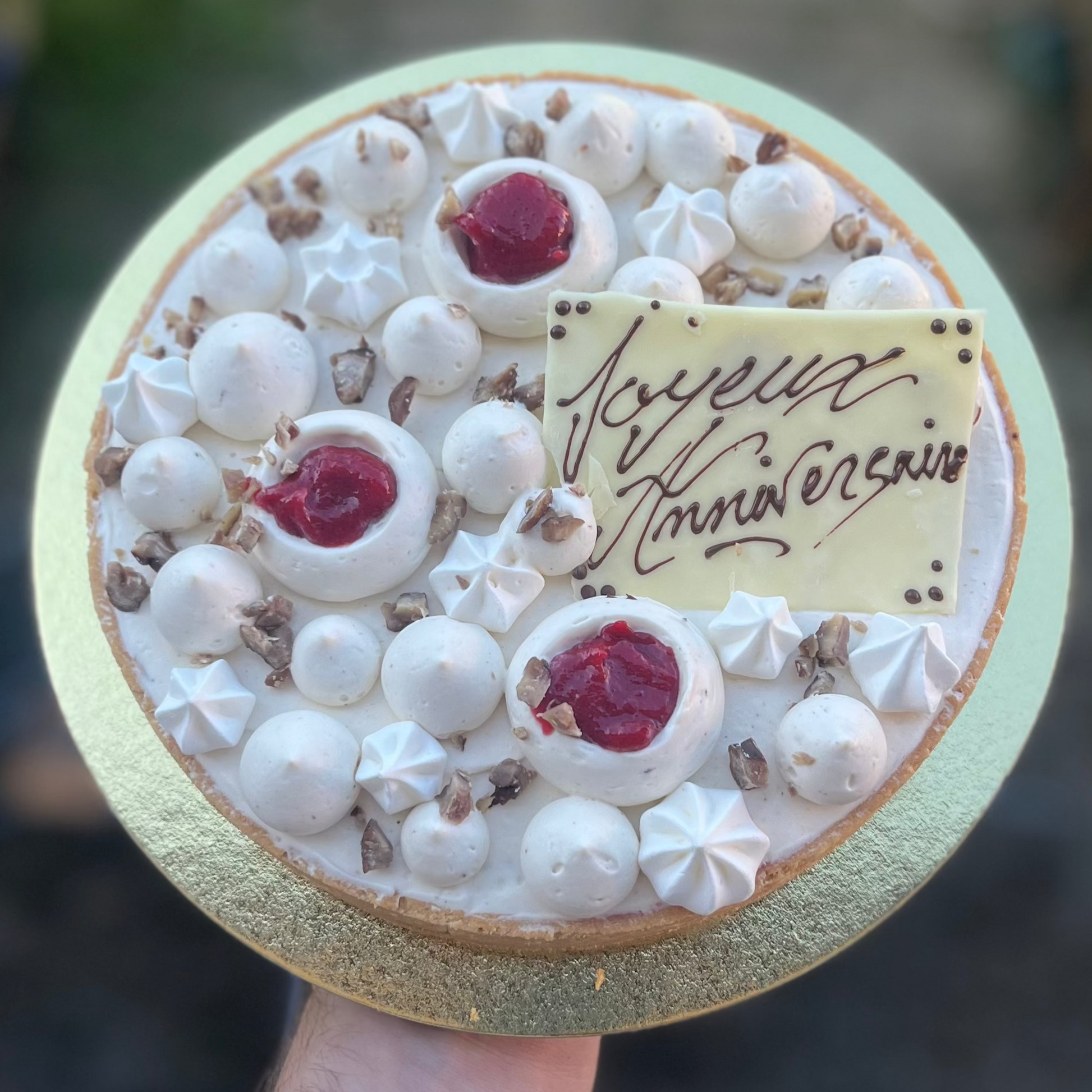 Découvrez la délicieuse tarte moderne marron-fraboise, une fine pâtisserie avec une garniture de franboise et d'une creme de marron onctueuse. Savourez chaque bouchée de cette tarte moderne et élégante avec des ingrédients de qualité supérieure. Un choix parfait pour les gourmets et les amoureux de dessert.