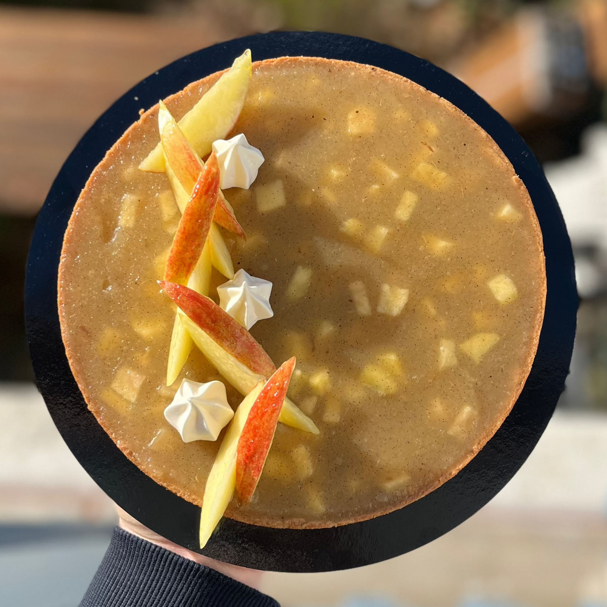 Succombez au charme de notre tarte aux pommes, un classique indémodable revisité avec soin. Sur une pâte sablée dorée à souhait, une délicate compote de pommes maison. Des cubes de pommes caramélisées Surmonté de pommes fraiches découpé en suprème.